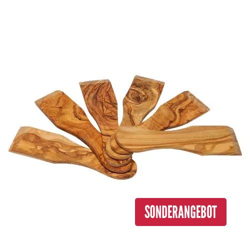 Hier finden Sie unsere Auswahl an Küchenhelfern aus Olivenholz. Darunter sind Evergreens wie Olivenholz-Salatbesteck, Pfannenwender, Kochlöffel oder Kellen aus Olivenholz. Aber auch moderne Küchen-Accesoires – beispielsweise unser Olivenholz-Pizzaschneider, Woklöffel, Honiglöffel oder die Parmesanreibe aus Olivenholz sind in unserem Shop erhältlich.